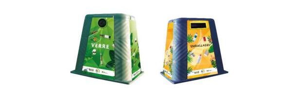 - une borne à emballages pour les papiers graphiques, cartons, emballages métalliques et bouteilles et flacons en plastique